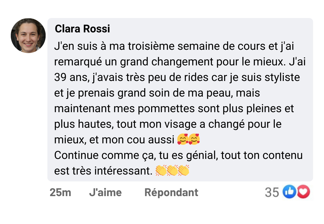 Chaque exercice sera expliqué étape par étape, vous permettant de comprendre et d'appliquer correctement les mouvements, en vous concentrant sur les muscles clés du visage.