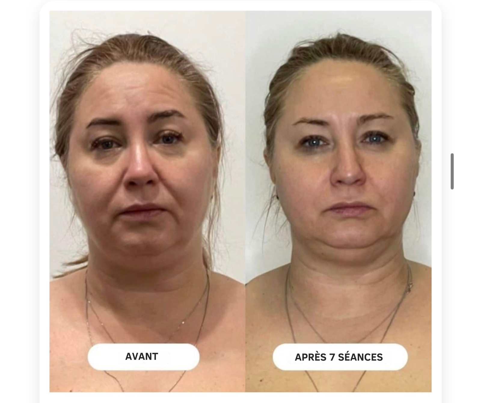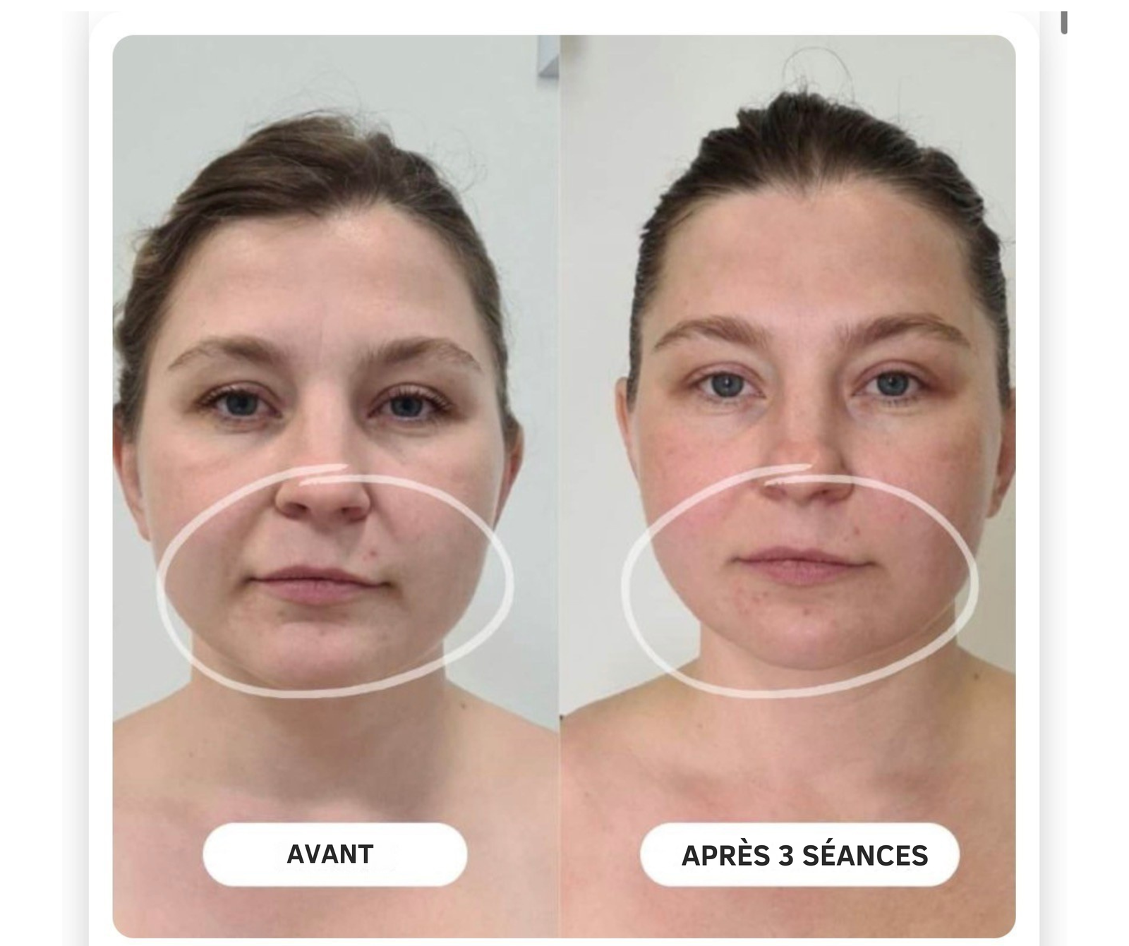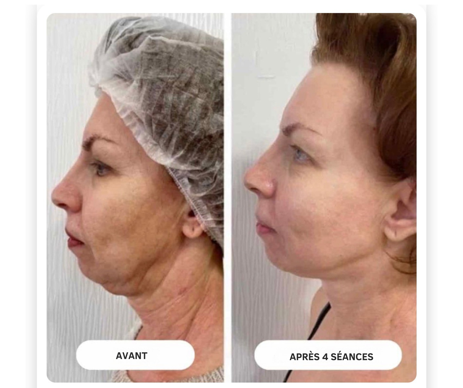 Réduit visiblement le double menton, créant un profil plus mince, raffermit la peau sous le menton pour un contour plus défini.