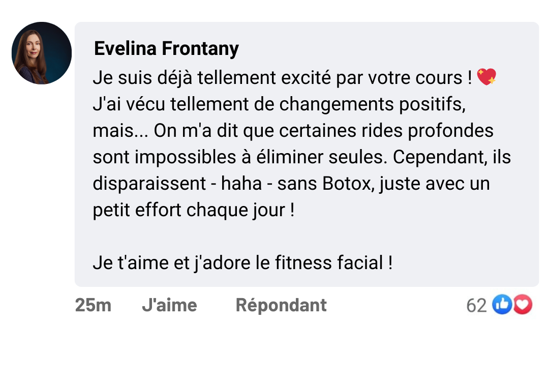 Les exercices du visage renforcent les muscles sous-jacents de la peau. En tonifiant ces muscles, la peau retrouve sa fermeté, réduisant visiblement les rides dans des zones clés telles que le front, les yeux et la bouche.