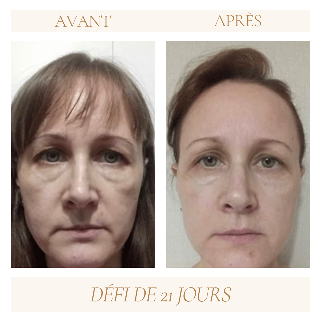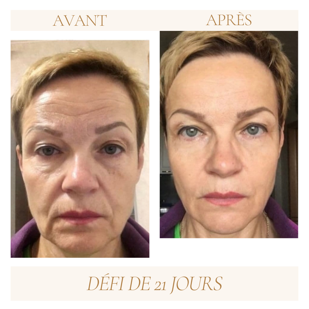 En seulement 3 semaines, j'ai réussi à réduire les rides de mon front, à améliorer mes paupières tombantes et à améliorer les poches sous mes yeux !